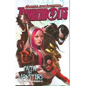 So this is about the darkest thing published by Marvel I've ever seen. The Thunderbolts are a sanctioned group of former (or not) super villains, and when Warren Ellis took over the book post-Civil War they were assigned to round up unregistered heroes and bring them in. Norman Osborn is the director, generally able to keep his composure but prone to a fanatical vendetta against Spider-Man. His team is a mix of villains both familiar and strange, although the book does a good job of giving you background on all of them. The manipulative Moonstone and psychotic Bullseye stand out in this volume, though they all have opportunities to be crazy and dangerous. Faith in Monsters covers a couple different attempted missions which generally don't go so well, as Moonstone is more concerned with making things look good for the camera than having solid team tactics and more damage gets done than good. I wasn't really familiar with any of the heroes they went after, but again, time is spent making sure everything's in context and makes sense. There's some pretty solid writing and dialogue throughout, and the art is nice and fits the book's dark tone. Ellis would only be on for one more volume, but he made good use of his time with the title.